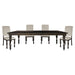 Casual transitional styling lends versatility to the placement of the Begonia Collection in a number of dining room settings. The grayish brown finish and traditional styling of the table, chairs and server lends distinctly to the execution of different looks from traditional to country casual. Knob hardware punctuates the look of each framed drawer and door front on accompanying server. Behind glass door display storage and wine glass rack provide additional functionality neutral toned fabric chairs perch atop turned legs and feature nailhead accent that serves to define the chair back’s profile.
