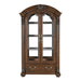 The grand scale of the Bergen Collection invokes a timeless aesthetic for your home’s traditional dining room. The dark oak finish highlights the distinct oak veneer of the collection, while also lending contrast to the decorative accenting of the curio’s design. Faux keyhole hardware fronts the doors of the curio, while traditional bale hardware fronts the drawers. The glass doors of the curio allow for enclosed display of your tabletop accessories and decorative items while traditional accenting abounds throughout the piece with classic routed pilasters, moldings, and decorative pediments gracing the design. 46 x 19.5 x 80.5H