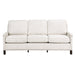 Traditional accents abound in the design of the Landrum Collection, their understated elegance making for classic addition to your living room. Nailhead trim and dark brown finished solid wood legs complement the striped textured fabric that covers the sofa. The reversible backs and seat cushions of the seating group are perfect for your active home. 78 x 35 x 37H
