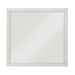 Bold geometrical styling is paired with unfettered modern lines to create the unique design of the Asteria Collection mirror's frame. An antique white finish highlights the collection’s oak veneer.