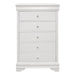 The unexpected intersection of traditional design and glamorous styling creates the dynamic look of the Lana Collection. A white finish is utilized to enhance the faux alligator embossed drawer fronts of the chest with crystal faceted knob hardware lending an additional fabulous touch. The chest features hidden storage allowing for the discrete placement of your personal affects. 32 x 17.5 x 47.5H