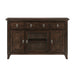 Add both elegance and functionality to your dining or living space with this server. Crafted from high-quality birch veneer, wood, and engineered wood, this server features a rich cherry finish complemented by a sophisticated dark walnut inlay, creating a timeless appeal. It offers ample storage with three smooth-gliding dovetail drawers, two side cabinets each with an adjustable shelf, and a center cabinet with an adjustable shelf and a stylish glass door. The polished chrome tone ring pulls add a touch of modern sophistication. While assembly is required, the result is a beautifully designed and highly functional server that enhances any room with its classic charm and practical storage solutions.